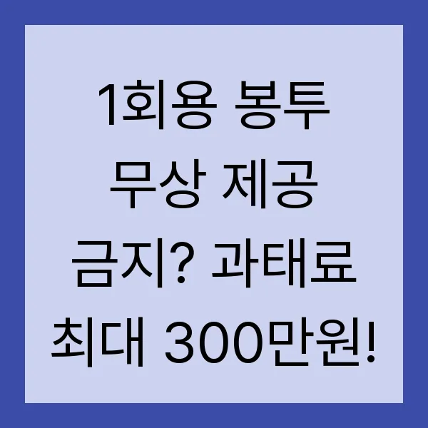 1회용 봉투 무상 제공 금지 위반 시, 자원재활용법 제41조 제2항 제3호에 따라 최대 300만 원 이하의 과태료 가 부과됩니다. 과태료 부과 기준은 위반 횟수, 매장 면적 등을 고려하여 자원재활용법 시행령 별표 8에 따라 차등 적용됩니다. "300만 원"이라는 숫자, 결코 가볍게 볼 수 없습니다! 규정 준수, 이제 선택이 아닌 필수 입니다!